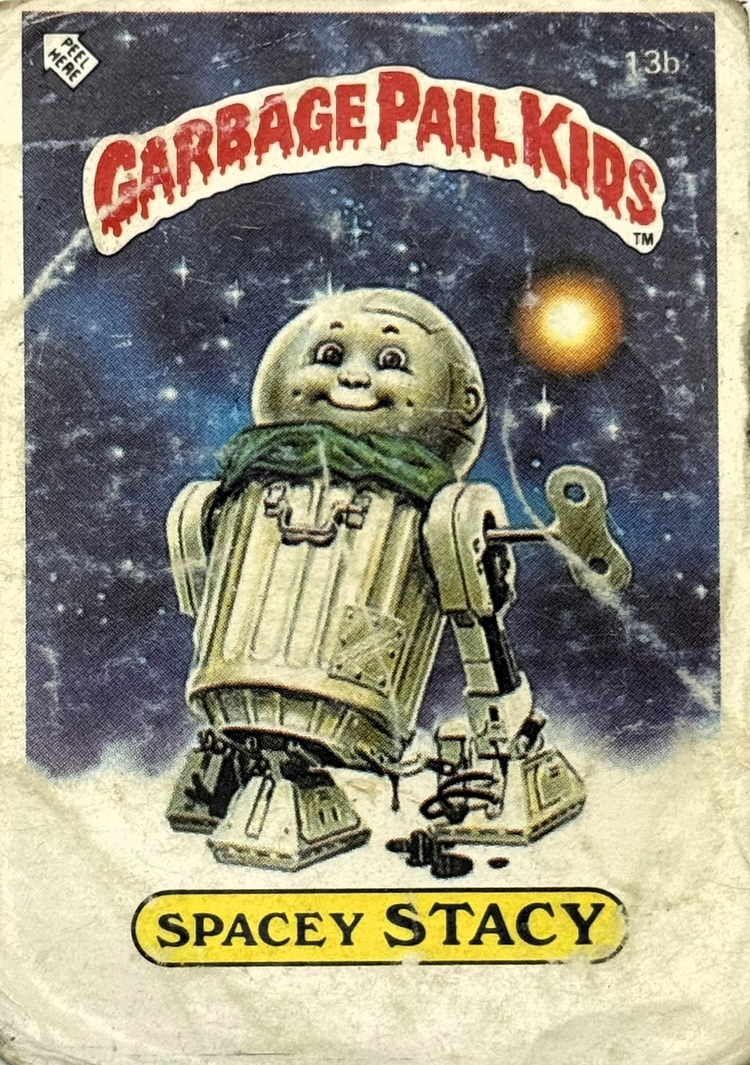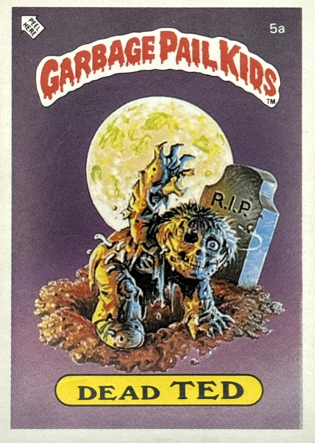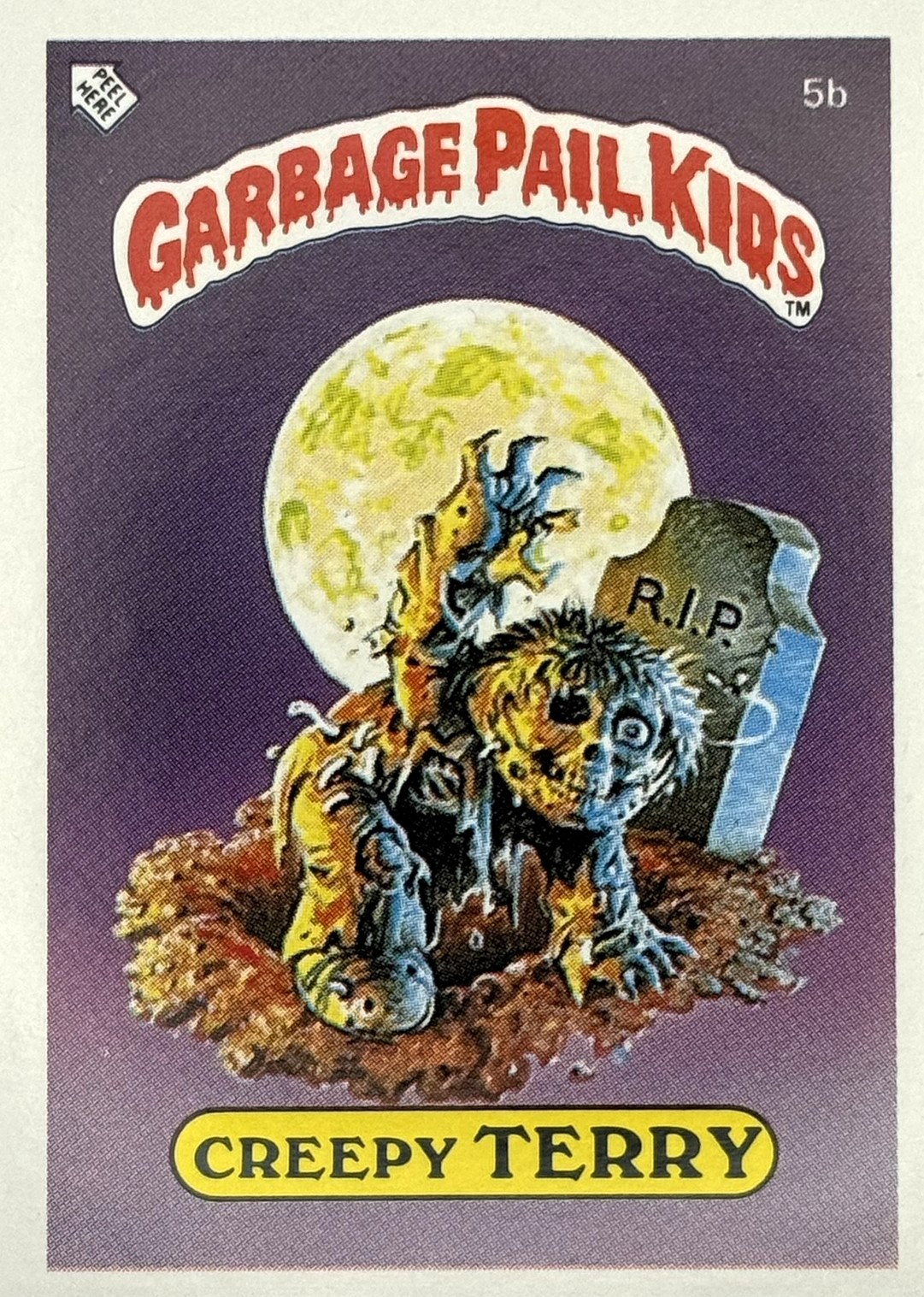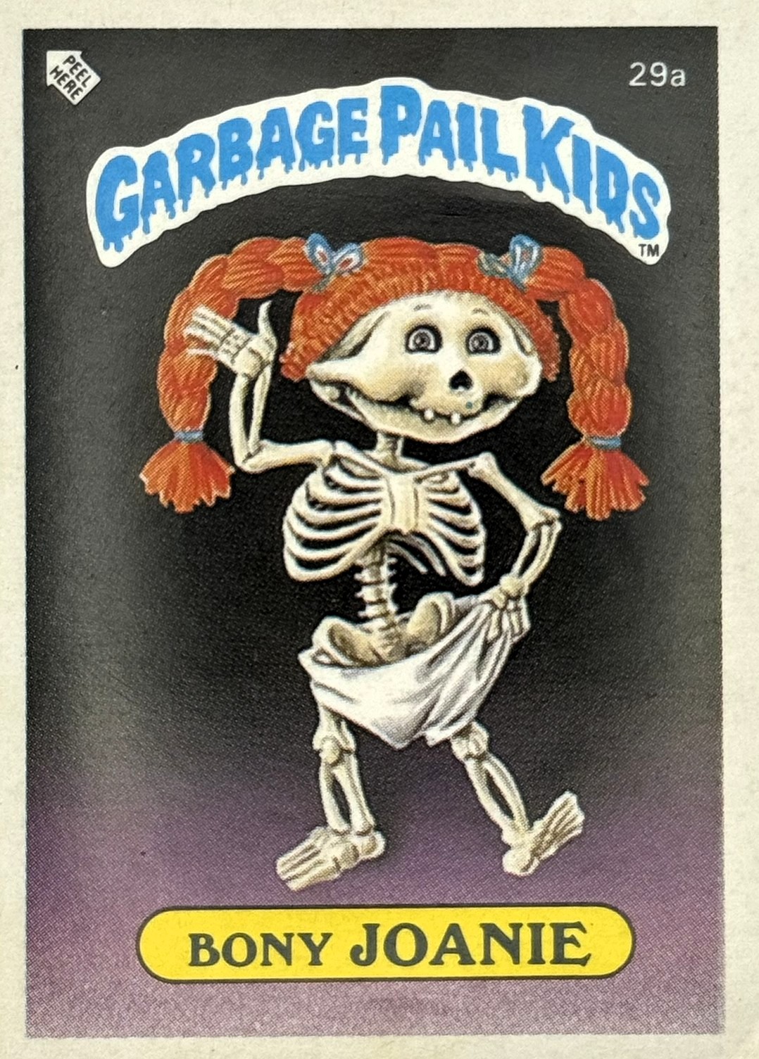 Röd text med gul bakgrund till "Garbage Pail Kids"-loggan.